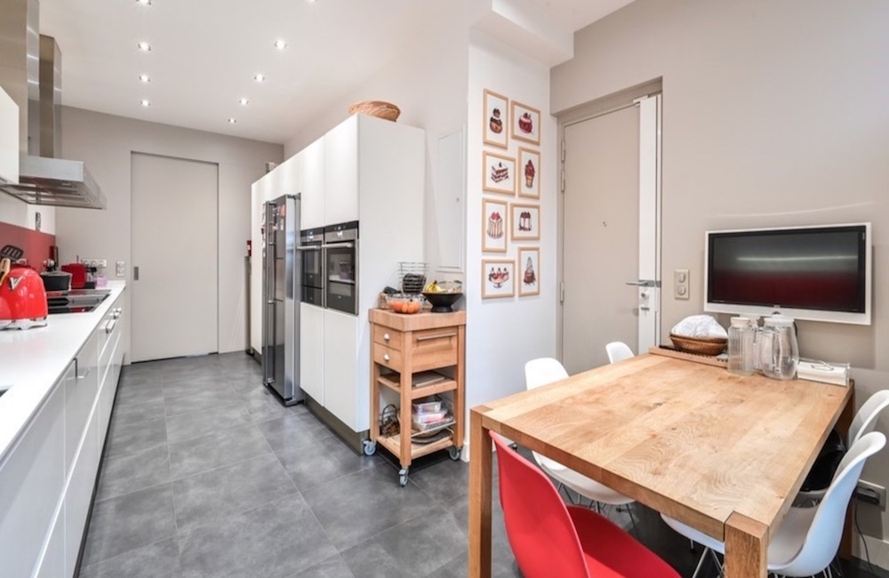 La cucina, di design contemporaneo e completamente attrezzata con elettrodomestici di ultima generazione, rappresenta uno spazio perfetto per chi ama la convivialità e la funzionalità.