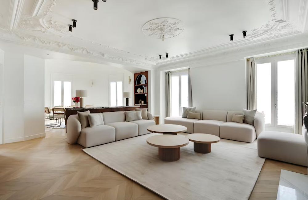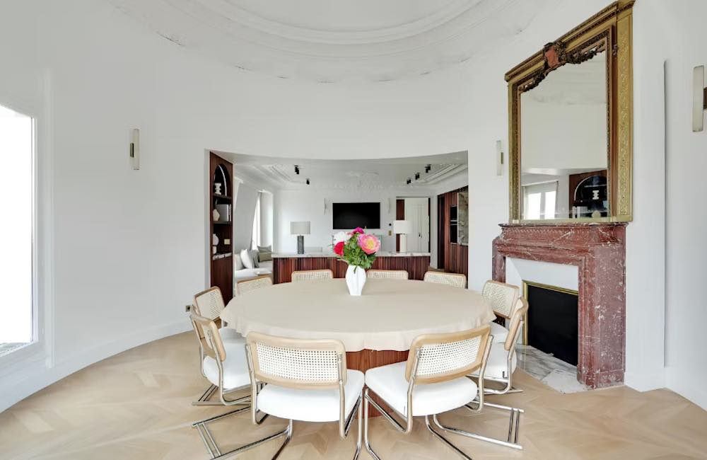 Da un ampio ingresso, si accede ad un grande salone triplo molto scenografico con camino, cucina a vista completamente attrezzata, salone da pranzo circolare con camino. Attualmente si contano tre camere da letto e tre bagni, gli interni sono stati ristrutturati completamente con finiture extra lusso. Possibile ripristinare una quarta camera con bagno come da progetto originale, al momento adibita a studio e locale lavanderia.